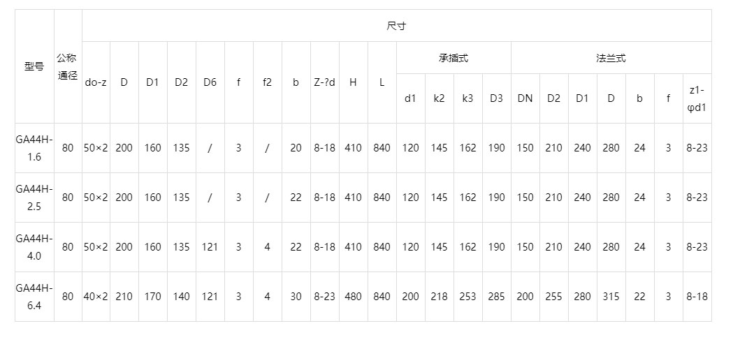 主要零部件材料說明 GA44H型安全閥的主要零件材料和GA42H-16C/25/40安全閥的相同。