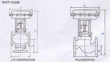 ◇ 切斷閥采用多彈簧執(zhí)行機(jī)構(gòu)與調(diào)節(jié)機(jī)構(gòu)用三根立相連,整個(gè)高度可減小約30%,重量可減輕約30%。