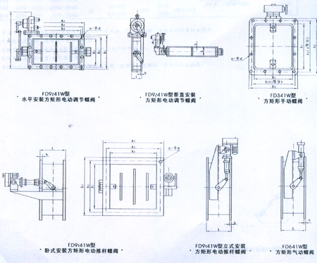 FD941/641/341W-1方形電(氣、手)動(dòng)蝶閥主要外形及連接尺寸表